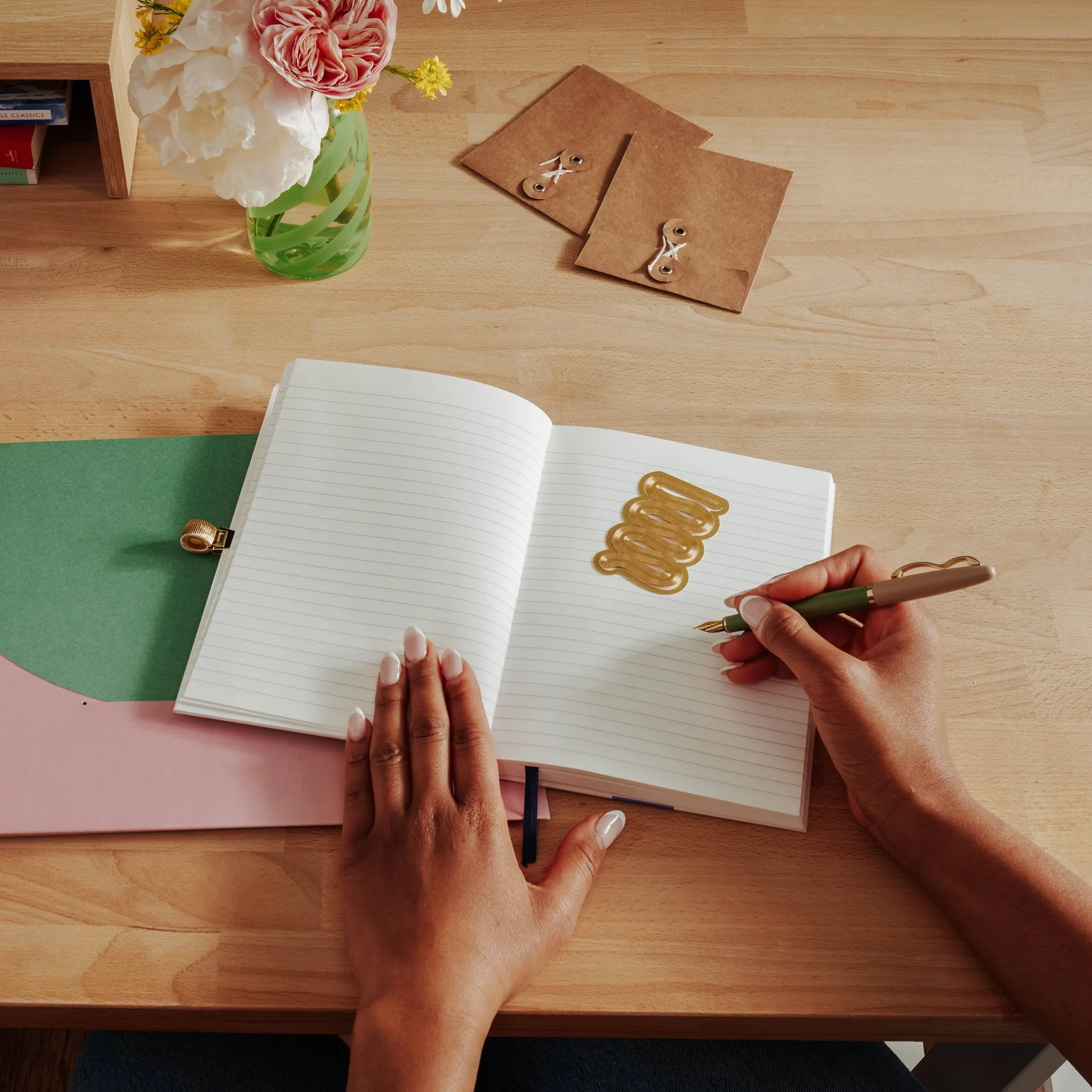 Immer unterwegs? Dieses Set aus Lesezeichen und Stifthalter ist genau das Richtige für dich. Es markiert zuverlässig deine Seite im Journal oder Planer und hält gleichzeitig deinen Lieblingsstift bereit, wenn du mal kurz Pause machst. Ein schlichtes, cleveres Accessoire, das den Alltag ein kleines bisschen schöner macht.